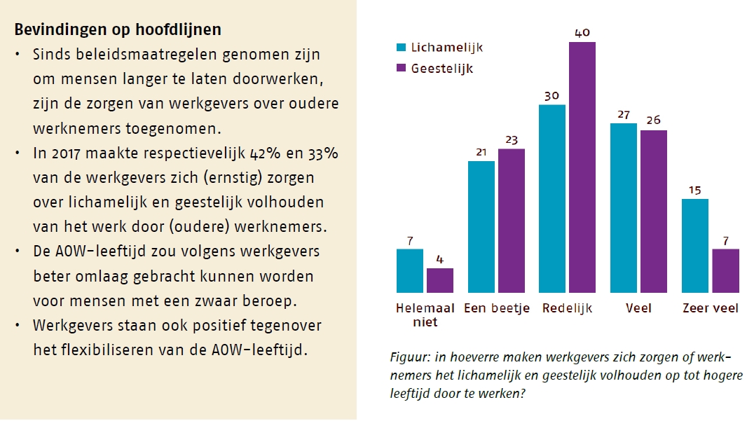 - De weerstand van werkgevers tegen het verhogen van de AOW-leeftijd, komt voor een belangrijk deel voort uit zorgen over de inzetbaarheid van oudere werknemers.